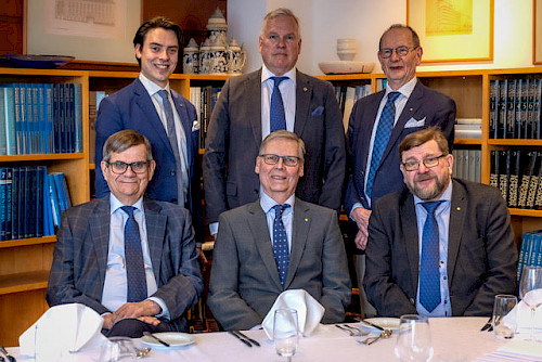alhaalla vasemmalta Antti Aho, Timo Toni, pj. ja Hannu Vaahtio, toiminnanjohtaja.