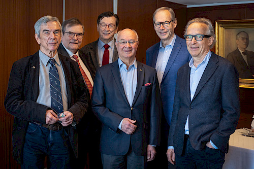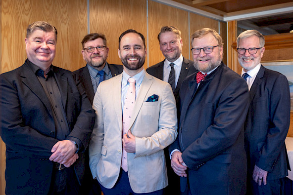 Kuvassa vasemmalta: Klaus Oesch, Jaakko Laajava, Pasi Patokallio, Pentti Partanen, Pertti Torstila ja Petri Tuomi-Nikula.