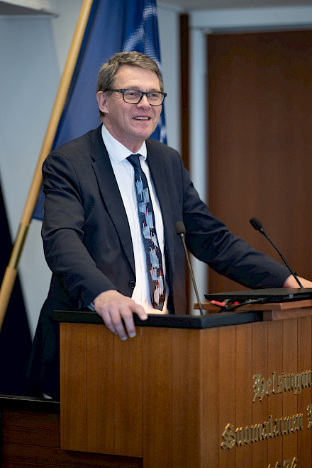 Eduskunnan puhemies Matti Vanhanen jakoi palkinnot parhaille kirjoittajille 28.2.2023